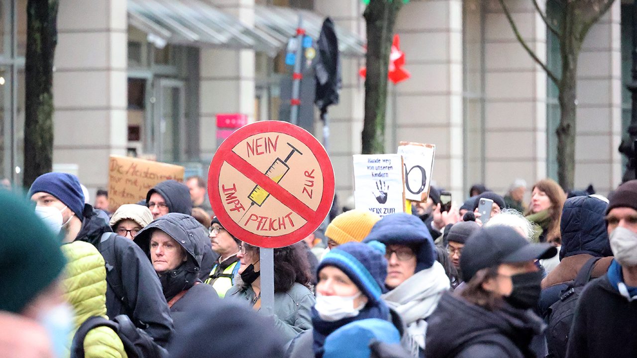 Am heutigen Mittwoch debattierte der Bundestag über eine mögliche allgemeine Impfpflicht. Die Impfgegner-Szene hatte deshalb unter Weltuntergangsrhetorik zu Protesten im Berliner Regierungsviertel aufgerufen. Die Liste von Gruppen und Personen, die nach Berlin mobilisierten, war lang – vom „Querdenken“-Anwalt Markus Haintz über den „Demokratischen Widerstand“ um Anselm Lenz bis hin zum Verschwörungs-Schlagersänger Michael Wendler. Die Debatte im Bundestag sei von einem „gleichgeschalteten Marionettenparlament“ geführt, so die Gruppe „Demokratischer Widerstand“ auf Telegram. Ein neuer Telegram-Kanal mit dem Namen „Wir stoppen die Impfpflicht“ wurde für die Demonstration erstellt und hat inzwischen rund 2.000 Abonnent:innen.