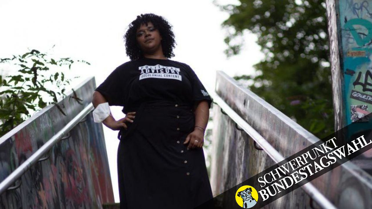 „Hip-Hop war schon immer eine grundpolitische Bewegung, die seit ihren Anfängen mit dem Kampf für Befreiung und Selbstermächtigung marginalisierter Menschen, insbesondere Schwarzer Menschen, verbunden war“, sagt Yvonne Müller aus Köln. Sie hat den Landesverband der „Urbanen“ in Nordrhein-Westfalen gegründet und kandidiert auf Listenplatz 1 für „Die Urbane. Eine HipHop Partei“. Yvonne Esi Müller beschreibt sich als afro-diasporisch (Mensch mit afrikanischen Wurzeln ohne Migrationsgeschichte, vgl. RosaMag) und aus der Arbeiter:innenklasse stammend. Bevor sie vor anderthalb Jahren anfing, sich in der Partei zu engagieren, war sie bereits aktiv im Kontext von Antirassismus und Klimagerechtigkeit. „Die Urbane“ hat sich 2017 in Berlin gegründet, besitzt aber mittlerweile sieben Landesverbände. Eine Motivation, in die Politik zu gehen, seien auch die Worte des Parteimitbegründers und Bundesvorstand Raphael Moussa Hillebrand gewesen, sagt Müller. „Wenn die Parteien so gar nicht die eigenen Perspektiven und Überzeugungen vertreten, besteht die Notwendigkeit, selbst aktiv zu werden, um Veränderungen hervorzurufen“, zitiert Müller den Parteigründer Hillebrand aus der Erinnerung.