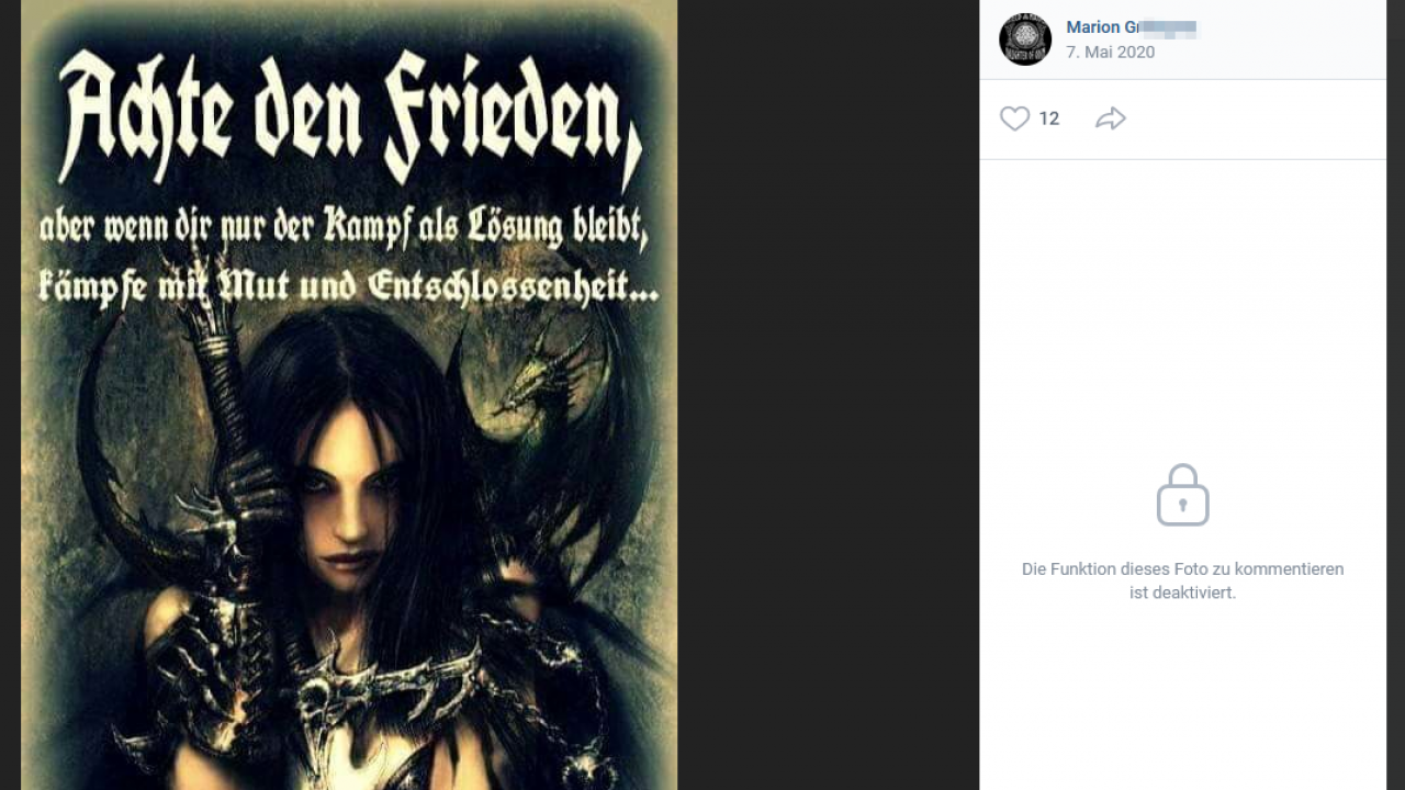 Eine gerade in der Entstehung und Festigung der Gruppe relevante Frau, Marion G., steht nicht mit vor Gericht. Nach Medienberichten ist sie als überzeugte Rechtsextremistin einzuschätzen. G. sympathisiert in sozialen Netzwerken offen mit der extrem rechten Szene und veröffentlichte einschlägige Symbole und Bilder. Marion G. gehört zu den Initiator:innen und Organisator:innen der rechten „Gelben Westen Nürnberger Land“. Kannst Du mehr zu ihr sagen, welche Rolle hat Marion G. in der Gruppe S. übernommen?