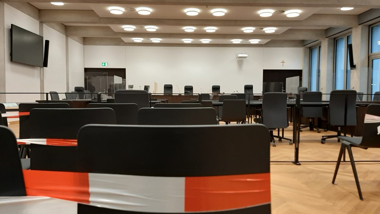 Weniger Presse, die einzigen beiden Zuschauer*innen kommen nach der Mittagspause nicht wieder, nur die Mutter des Angeklagten ist da. Am zweiten Verhandlungstag sagt nur ein einzelner Zeuge aus, dafür aber lange: Der Hauptsachbearbeiter des Falls, Herr A., beantwortet über mehrere Stunden Fragen zu den Waffen, die beim Angeklagten Fabian D., einem mutmaßlichen Mitglied der rechtsterroristischen Gruppe „Feuerkrieg Division” (FKD), gefunden wurden. Auch die Chatverläufe der Gruppe sollen Gegenstand seiner Aussage sein. Das ist kein leichtes Unterfangen: Denn das beschlagnahmte Sammelsurium umfasst mehrere Messer, Werkzeuge, drei Schreckschusswaffen, zwei Luftgewehre, das Originalgehäuse eines Maschinengewehrs und weitere Teile, mit denen eine funktionsfähige Waffe hätte gebaut werden können.