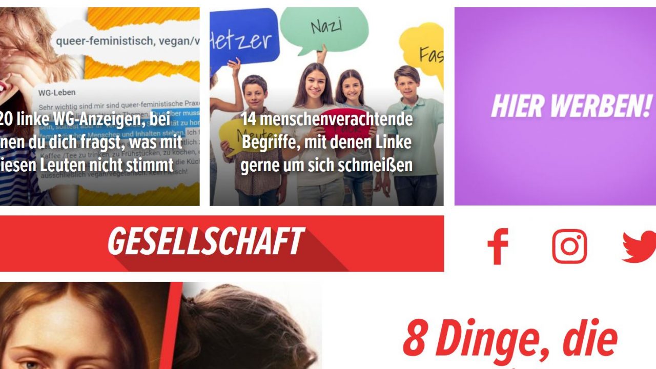 - Bsp: „20 linke WG-Anzeigen, bei denen Du Dich fragst, was mit den Leuten nicht stimmt“ (sie sind nicht rechts)