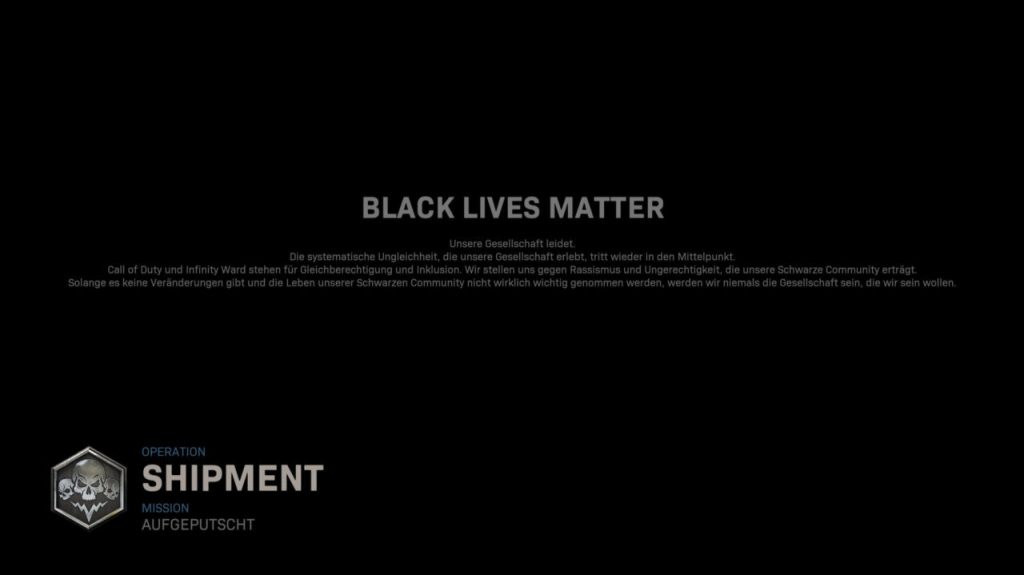 Im März 2020 veröffentlicht das Entwicklerstudio „Infinity Ward“ das populäre Battle-Royal-Spiel „Call of Duty – Warzone für PC und Konsole. Über 50 Millionen Spieler*innen kämpfen seit Release in dem fiktiven Landabschnitt „Verdansk“ darum, wer als Überlebende/r aus dem Kriegsgebiet entkommt. Anfang Juni änderte sich der Ladebildschirm des sich stetig wiederholenden Ego Shooters. Die sonst starren Überlebenstipps wichen einem klaren Bekenntnis für die Protestbewegung: „BLACK LIVES MATTER […] Call of Duty und Infinity Ward stehen für Gleichberechtigung und Inklusion. Wir stellen uns gegen Rassismus und Ungleichheit, die unsere Schwarze Community erträgt.“