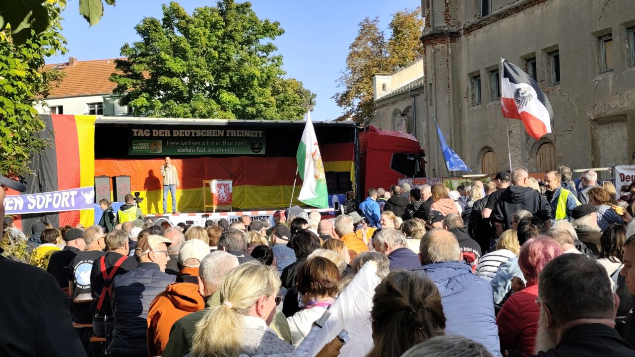 Rund 800 Neonazis aus dem Umfeld der ehemaligen NPD demonstrierten am 3. Oktober in Altenburg in Thüringen. Sie paraphrasierten Hitler und sprachen über ihr Verhältnis zur AfD.