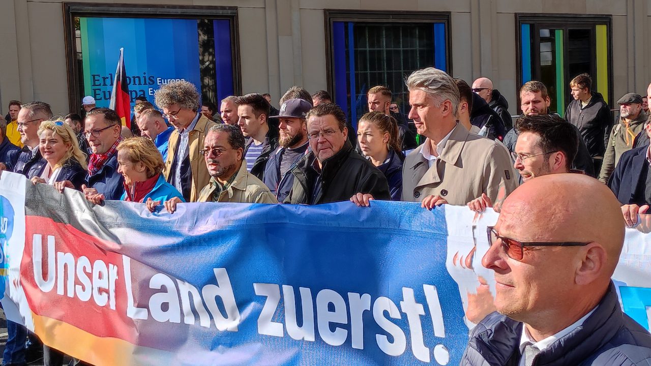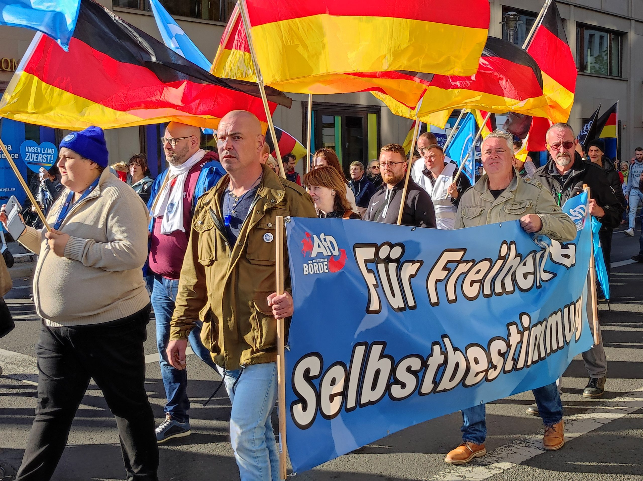 Verkehrte Welt: AfD läuft nach links, rechts steht die Gegendemo.