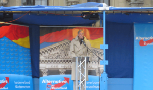 Doch möglicherweise ist genau dies, was die populistische Partei mit ihrem Bundestagswahlkampfauftakt bezwecken wollte: Die Opfer-Rolle, die Märtyrer-Partei, deren Sympathisant_innen durch Sitzblockaden der Protestierenden von der Kundgebung ferngehalten wurden. Denn auf den ersten Blick ist nicht ersichtlich, wieso die AfD sich ausgerechnet Osnabrück ausgesucht hat, um ihren Wahlkampf zu beginnen. Hat die Partei es in den vergangenen Jahren doch nicht einmal geschafft, hier Kandidat_innen für die Kommunalwahl aufzustellen. Darüber hinaus hat sich der Kreisverband durch innerparteiliche Machtkämpfe beinahe komplett zerlegt.