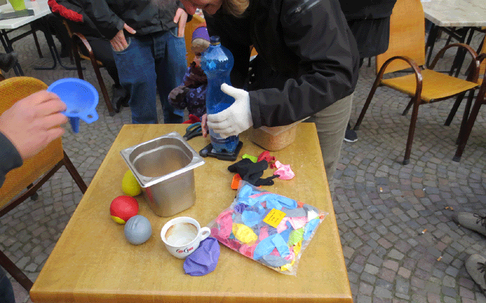 Restaurant-Besitzer Lorenzo veranstaltete auf dem Platz einen Jonglierkurs unter dem Motto „Bunte Bälle statt braunem Geschwafel“