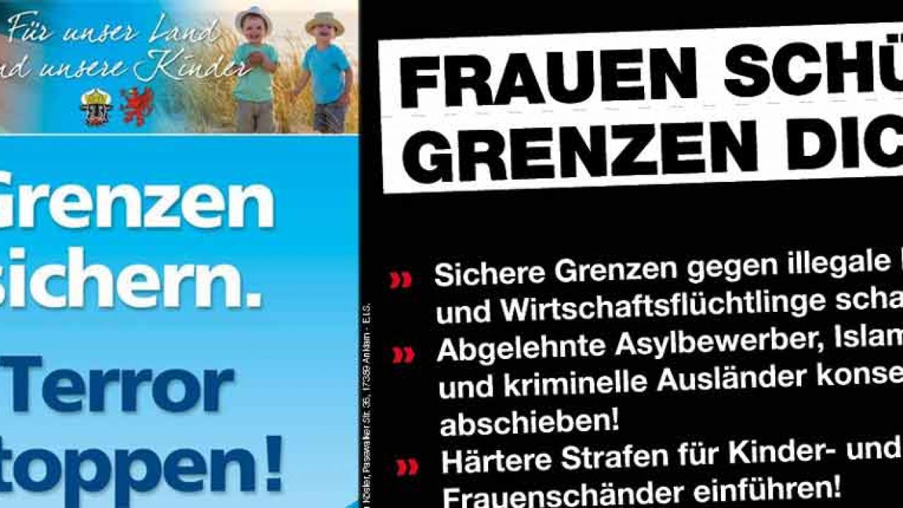 sitzt im Landtag seit 2006; bekam bei der letzten Landtagswahl 6 Prozent der Zweitstimmen.sitzt aktuell mit fünf Abgeordneten im Landtag: Udo Pastörs (Fraktionsvorsitzender), Stefan Köster, Tino Müller, Michael Andrejewski, David Petereitversuchte vor allem, mit Provokationen Aufmerksamkeit zu erregen; Anzahl der Ordnungsrufe: mehr als 300 zwischen 2011 und 2016, 37 Mal wurde das Wort entzogen, 31 Mal Abgeordnete von Sitzungen ausgeschlossen; Anzahl der Anträge 214, davon aber 59 in einer Sitzung als PR-Coup -> spielt im Parlamant keine Rolle (vgl. Endstation rechts)dafür 1.355 „kleine Anfragen“ -> Informationen für die rechtsextremen Szene, die zudem Behörden und Ministerien „beschäftigten“ und damit demokratisch-konstruktive Arbeit störenDie NPD sitzt aktuell in 7 von 8 Kreistagen mit 17 Sitzen; bekam 3,2 Prozent der Stimmen bei der Kommunalwahl 2014Nutzt die staatlichen Gelder aus der parlamentarischen Arbeit für eine aktive Infrastruktur, Anbindung an Neonazi-Strukturen, aber auch an Bevölkerung ohne Berührungsängste nach rechtsaußen (z. B. soziale Angebote im „Thinghaus“ in Grevesmühlen, Kinderfeste, langjähriges Hetzportal „mupinfo“ (pausiert gerade) etc.)Aktuelle Wahlkampfthemen: „Für Volk und Heimat“, „einzige konsequente Alternative zu den volksfeindlichen Blockparteien“, „keine Einwanderung“, „Schutz unserer Frauen und Töchter vor Sexualstraftätern“, „Nein zur Bargeldabschaffung“, „bessere Ahndung und Bestrafung von Einbrechern“, „Nein zu TTIP/Ceta“, „Raus aus der EU und Nato“ usw.Verhältnis zur AfD: Anfangs gab Frank Franz noch als NPD-Pressesprecher die Parole aus, die AfD sei „Türöffner und Eisbrecherfunktion“ für NPD-Themen. Heute sagt Udo Pastörs zu „Panorama“: „Schauen Sie sich Herrn Höcke an. Der kopiert meine Reden, fischt am rechten Rand, und ich gehe für meine Reden ins Gefängnis.“Hat keine Direktkandidaten aufgestellt, also keine Konkurrenz mit der AfD bei den ErststimmenVersucht eine Zweitstimmenkampagne gegen die AfDversucht krude Diskreditierungskampagne, z.B. postet ein der NPD-Verband Westmecklenburg ein Foto einer Frau in einem Burka-ähnlichen Kleidungsstück, die ein AfD-Plakat anfasst („Zusendung aus Schwerin! Was soll man davon halten?“); die JN kommentiert, die von ihnen als Muslima wahrgenommene Frau gehöre nun auch zu AfD-Unterstützer_innen, wie auch schon Homosexuelle und Schwarze (in diskriminerender Sprache, vgl. Tagesspiegel)Prognose: 4 Prozent