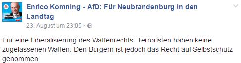 Komnings auffälligste politische Forderung in den vergangenen Wochen: eine Liberalisierung des Waffenrechts.