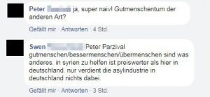 Die Reaktionen in der Szene, zumindest wie sie auf Facebook sichtbar werden, sind deutlich gespalten. Die zustimmenden Fans koppeln ihre Freude über die Sinnhaftigkeit des Projektes mit Kritik an bestehenden Hilfsorganisationen („dass sich andere soziale Organisationen nur bereichern wollen und nicht gewillt sind diese Probleme zu mindern oder gar abzuschaffen.“ „Leider verdienen einfach zuviele Global Player mit dem Leid dieser Leute.“). Ablehnende Stimmen klingen dann gern mal so wie die von „Guntar“: „Ich setze lieber auf sichere Grenzen und gute bewaffnung. Als zu versuchen in irgendwelchen Ländern einzumischen. Jedem das seine. Nicht falsch verstehen.“ (Fehler im Original, und nein, die Anspielung auf das Konzentrationslager Buchenwald, über dessen Eingang „Jedem das Seine“ stand, verstehen wir bestimmt nicht falsch). Auch als „super naive Gutmenschen“ müssen sich die „AHA!-Aktivisten“ beschimpfen lassen. Ein Unterstützer kontert empört: „gutmenschen/bessermenschen/übermenschen sind was anderes. in syrien zu helfen ist preiswerter als hier in deutschland. nur verdient die asylindustrie in deutschland nichts dabei.“ (Auch im Original so. So viel zur Pflege deutscher Sprachkultur in der digitalen Kommunikation).