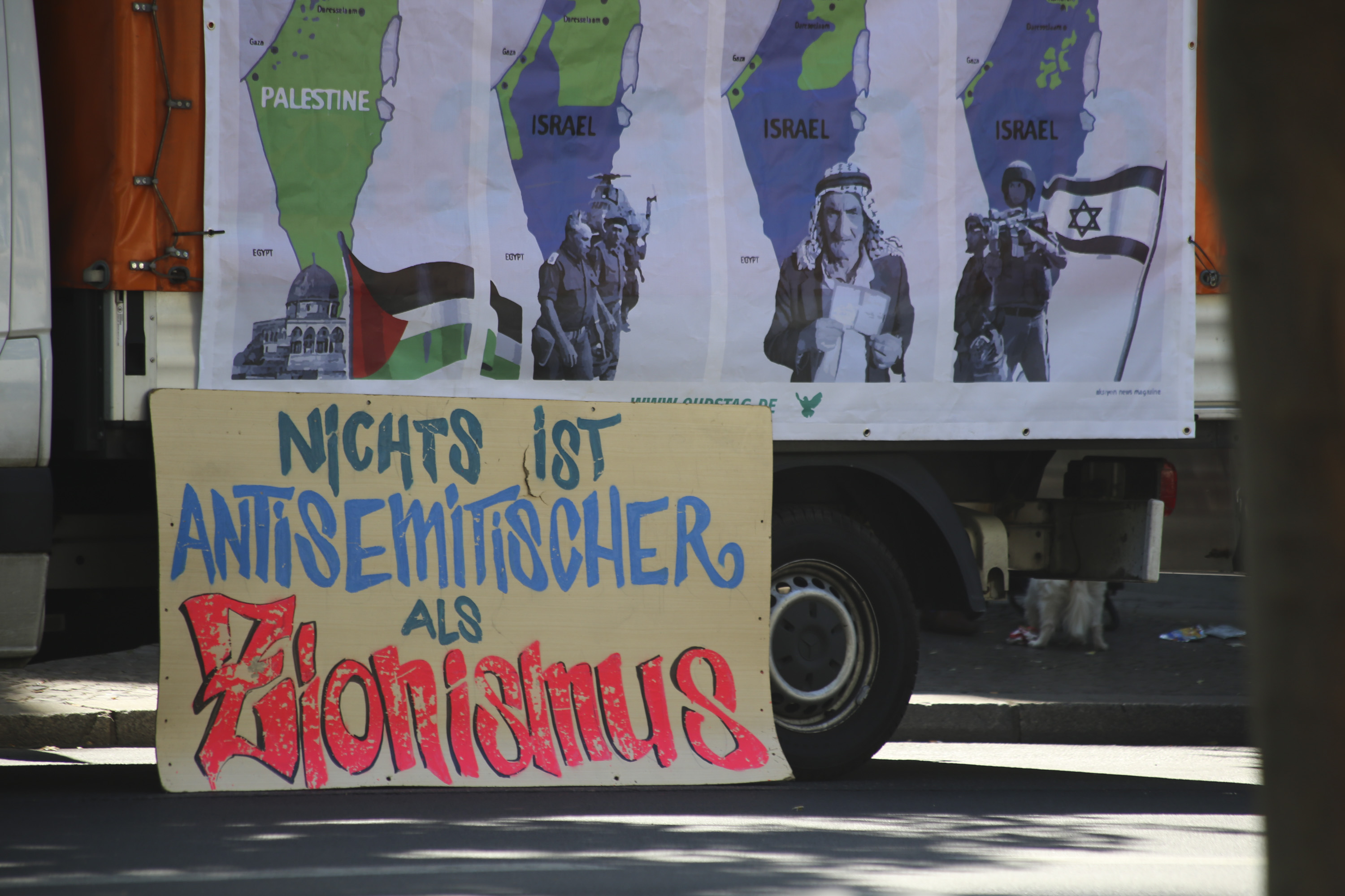 Zwar zieht die Polizei für dieses Jahr eine eher positive Bilanz – der Verlauf der Demo sei weitestgehend unauffällig gewesen, so ein Sprecher der Polizei gegenüber dem RBB – Hass auf Juden, Jüdinnen und Israelis gehört allerdings zur DNA dieses Aufmarsches und war auch dieses Jahr eindeutig zu erkennen. Die Organistor*innen versorgten die Teilnehmer mit Plakaten, die sie bei der Demo mit sich führen sollten, unter anderem mit dem Schriftzug „#niewieder“. Der Hashtag #niewieder wird zumeist beim Gedenken an den Holocaust verwendet. Beim Al-Quds-Marsch diente er dem sekundären Antisemitismus. Ein Redner erklärte bei der Auftaktkundgebung, dass Israelis einen Völkermord betreiben würden, auf den man mit diesem Slogan hinweisen wollte. Indirekt wirft man also Israel vor, die Verantwortung für einen zweiten Holocaust zu tragen.