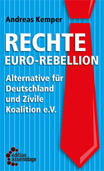 Andreas Kemper“Rechte Euro-Rebellion Alternative für Deutschland und Zivile Koalition e.V.“Reihe Antifaschistische Politik [RAP], Band 9120 Seiten, 12.80 Euro ISBN 978-3-942885-49-2 | WG 973Neuerscheinung 20. August 2013