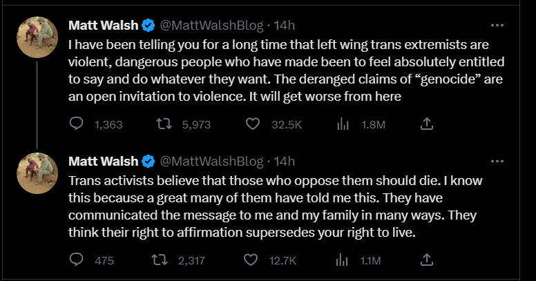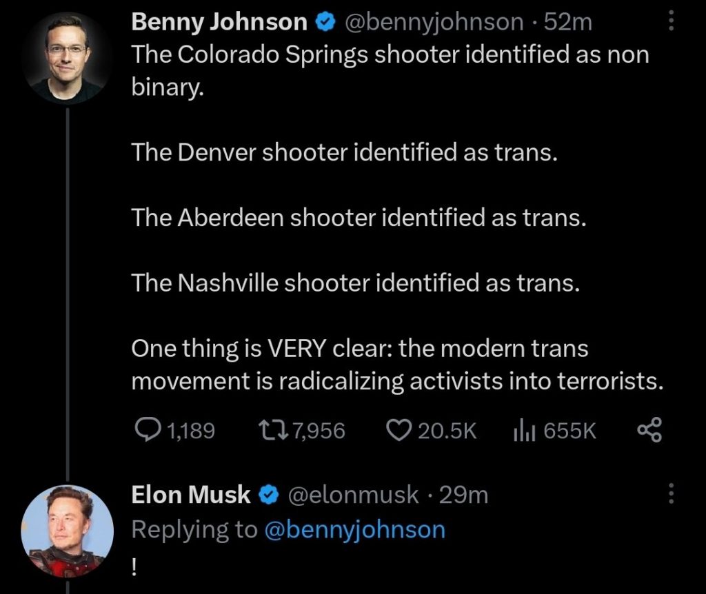 Diese Tweets wurden als bewusste Falschinformationen in die Welt gesetzt. Als jedoch bekannt wurde, dass der Täter von Nashville wohl seit einigen Monaten auf seinem LinkedIn-Profil die Pronomen auf „er/ihn“ geändert hatte, konnten sich Transfeind*innen in ihrem Hass tatsächlich bestätigt fühlen. Endlich eine trans Person, die eine Gewalttat begeht! Endlich eine Möglichkeit, dem Hass auf die LGBTQ-Community scheinbar berechtigten Lauf zu lassen!