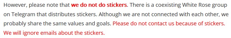 Der Telegram-Kanal wurde am 6. November 2020 erstellt, eine Woche nach der britischen „The White Rose“-Website. Die Aufkleberdesigns auf dem Kanal passen zu den Verschwörungsnarrativen der britischen Website. Der Kanal teilt auch regelmäßig Bilder von platzierten Aufkleber und deren Standort. Die überwiegende Mehrheit der Standorte, und alle Standorte im ersten Monat des Bestehens des Kanals, liegen in Großbritannien.