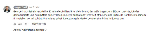 Hagen Grell unter seinem Video Quelle Screenshot Youtube