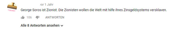 Verschwörungsideologien bauen heute immer auf dualistischen Weltbildern auf: Die Guten kämpfen gegen die Bösen (dazwischen befinden sich die Unwissenden). Wenn nun das Böse beschrieben werden soll, das im Geheimen wirkt, so kommen in Gesellschaften mit latentem Antisemitismus diejenigen Eigenschaften zum Vorschein, die in der Vergangenheit Jüdinnen und Juden als „Agent*innen des Bösen“ zugeschrieben worden sind. Teile dieser Eigenschaften sind durch das geschichtlich gewachsene Judenbild gleichzeitig Eigenschaften des Bösen. Wenn also das Bild der bösen Weltverschwörer*innen gezeichnet wird, dann handelt es sich dabei um eines, das durch wenige Pinselstriche zum „Juden“ konkretisiert werden kann – Bei Soros geht das ja ziemlich einfach, da er Jude ist.
