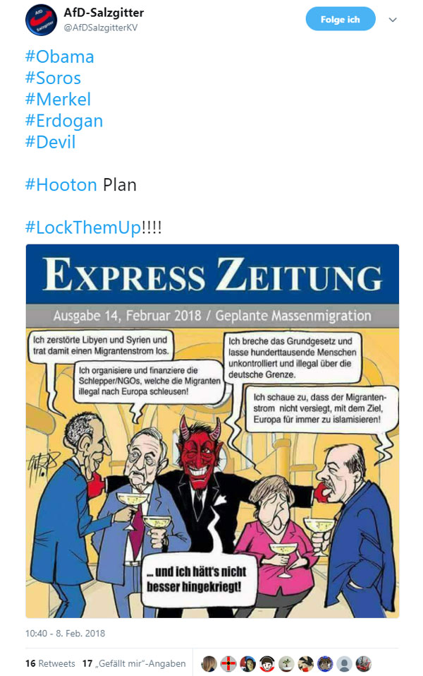 Auch die AfD teil Verschwörungstheorien zu Soros Quelle: Screenshot Miro Dittrich