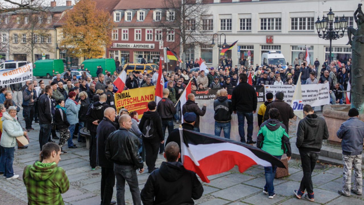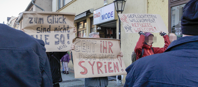 Nach einer zweiwöchigen Mobilisierung, unter anderem auf einer Konferenz des verschwörungstheoretischen Querfront-Magazins „Compact“, versammelten sich am Samstag Nachmittag rund 280 „Asylgegner“, die vom lokalen Neonazi bis hin zum eingefleischten Esoteriker reichten, um auf dem örtlichen Marktplatz zu demonstrierten. Eine ähnliche Veranstaltung, die unter dem Motto „Ost Brandenburg erwacht“ stand, fand bereits am 10. Oktober in der benachbarten Stadt Wriezen statt. Angemeldet wurden beide Demonstrationen von dem aus Wriezen stammenden Lars Günther, der heute in Berlin lebt und dort in der Vergangenheit ähnliche Veranstaltungen – Friedensmahnwachen – anmeldete. Auf ihren Transparenten standen platte Parolen, aber auch Zitate des Dalai Lama, die die Flüchtlingsfeinde aber bewusst in einen falschen Kontext setzten, um daraus eine verlogene Hasspropaganda zu machen.