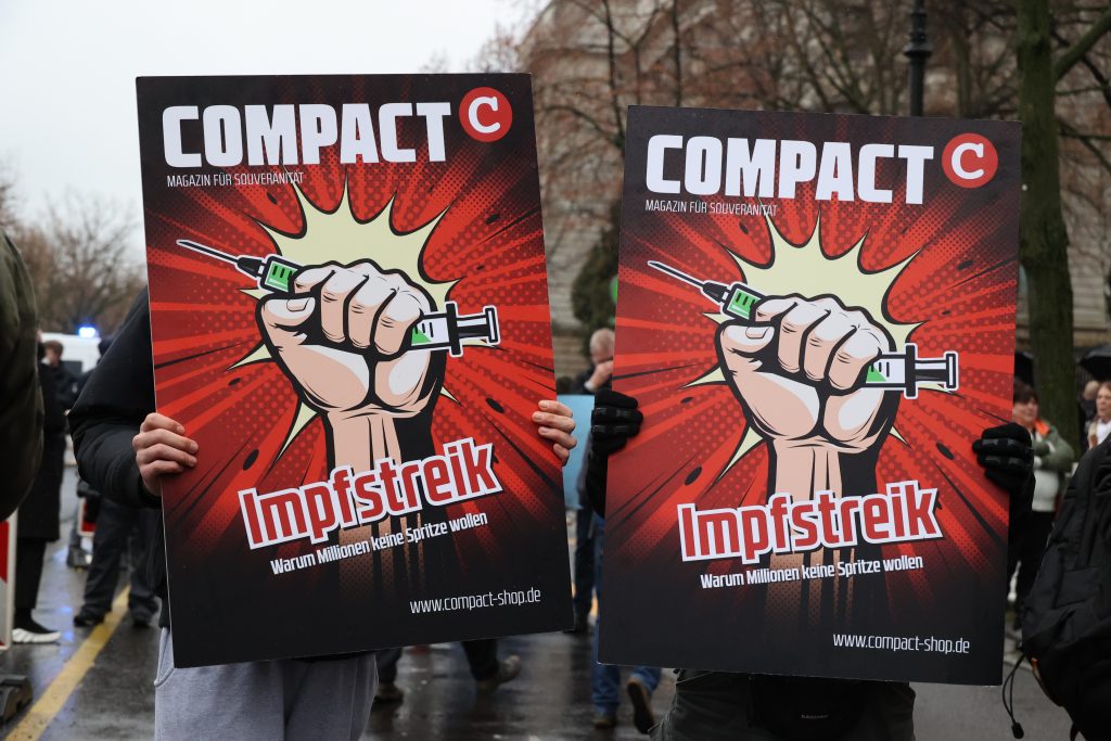 Am heutigen Mittwoch debattierte der Bundestag über eine mögliche allgemeine Impfpflicht. Die Impfgegner-Szene hatte deshalb unter Weltuntergangsrhetorik zu Protesten im Berliner Regierungsviertel aufgerufen. Die Liste von Gruppen und Personen, die nach Berlin mobilisierten, war lang – vom „Querdenken“-Anwalt Markus Haintz über den „Demokratischen Widerstand“ um Anselm Lenz bis hin zum Verschwörungs-Schlagersänger Michael Wendler. Die Debatte im Bundestag sei von einem „gleichgeschalteten Marionettenparlament“ geführt, so die Gruppe „Demokratischer Widerstand“ auf Telegram. Ein neuer Telegram-Kanal mit dem Namen „Wir stoppen die Impfpflicht“ wurde für die Demonstration erstellt und hat inzwischen rund 2.000 Abonnent:innen.