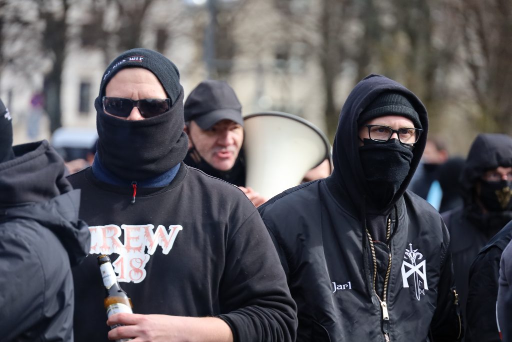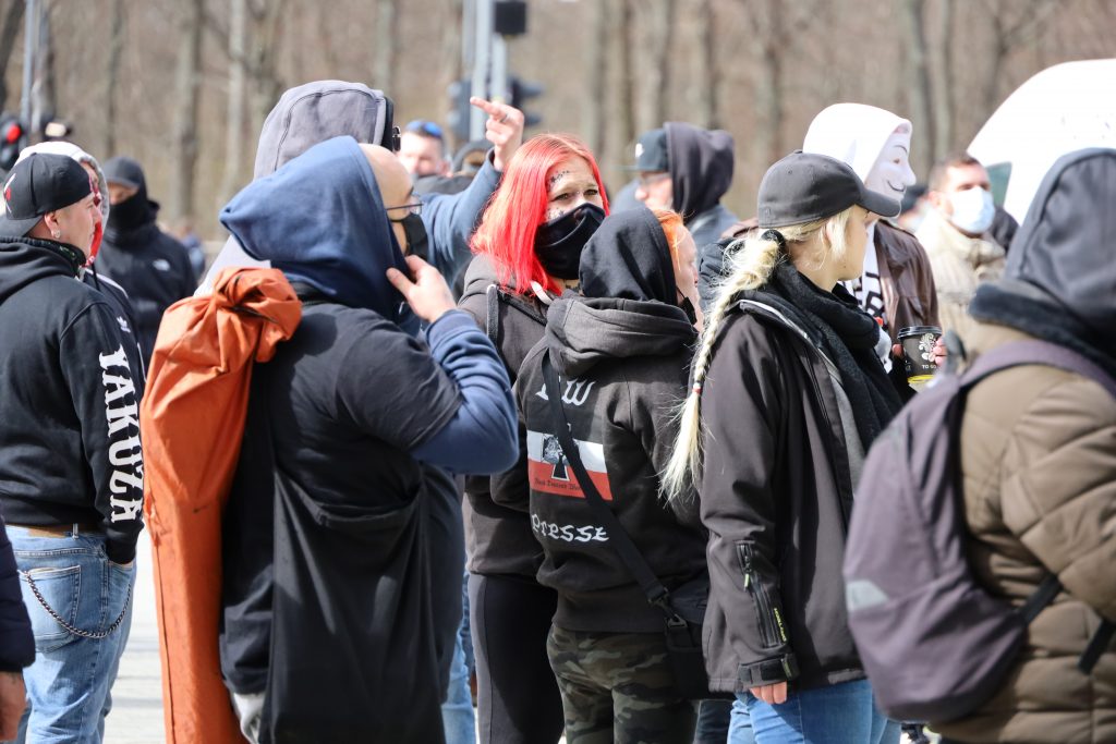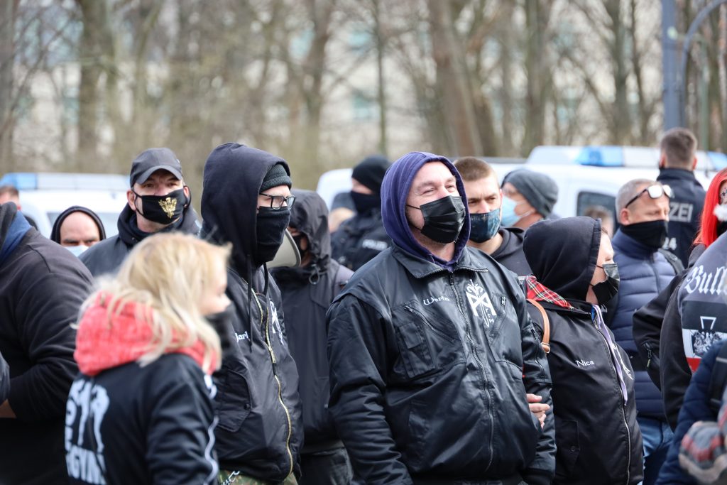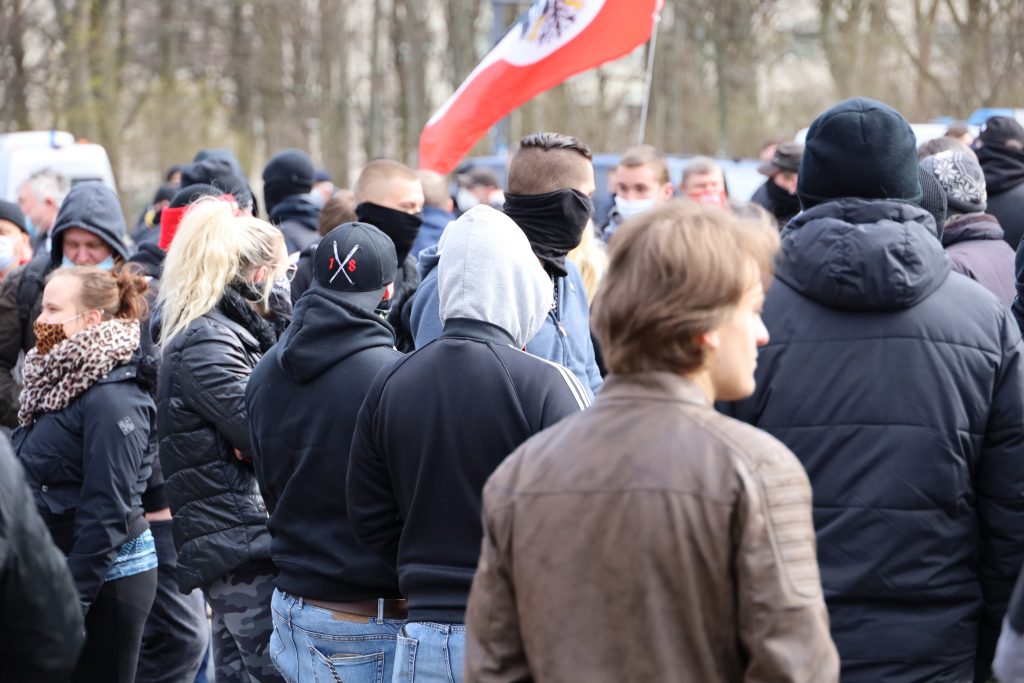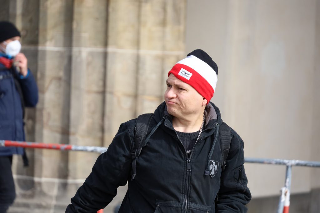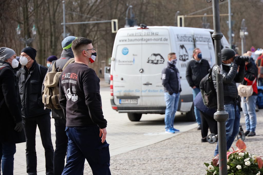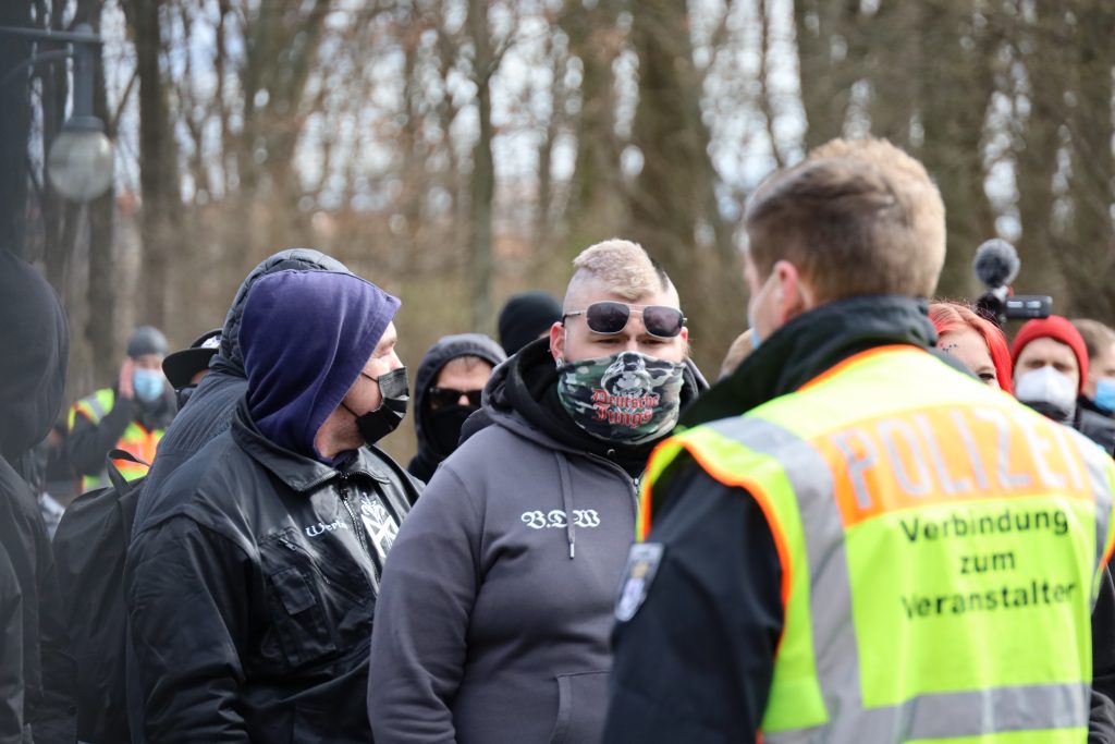 Ein Sammelsurium aus rechtsextremen Kleinstgruppen: Zu den Organisationen, die zur Demonstration für „Frieden, Freiheit, Souveränität“ in Berlin am Samstag, den 20. März 2021, aufriefen, zählten u.a. die „Patriotic Opposition Europe“, „Bärgida“, „NRW stellt sich quer“ und „Freie Sachsen“. Vor Ort waren auch die „Corona Rebellen Düsseldorf“, „HoGeSa“, die „Kameradschaft Black Diamond Wolf“, die „Anti-Antifa“ und die „Gelbe Westen Berlin“, sowie autonome Nationalist*innen und Rechtsextreme aus Hamburg und Thüringen. Rund 300 Neonazis, Hooligans und „Reichsbürger*innen“ versammelten sich ab 11 Uhr vor dem Brandenburger Tor. Ein Autokorso am frühen Morgen wurde wegen mangelnder Teilnehmer*innen abgesagt. Mit der Pandemie hatte die Demonstration am Ende wenig zu tun. Viel mehr wurden Parolen gegen die „Antifa“ sowie die üblichen Neonazi-Schlachtrufe skandiert.