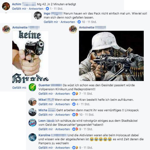 Was sagt uns das vielleicht auch über rechtsextreme Bürgerwehren? Oder über flüchtlingsfeindliche „Nein zum Heim“-Bündnisse, die observieren und ins Internet stellen, wer eine Unterkunft als Bewohner_in oder Engagierte_r betritt und verlässt? Was aber höchstens lokal bekannt ist, wo der öffentliche Aufschrei ausbleibt?