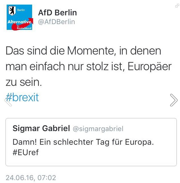 In den rechtspopulistischen Lagern der anderen Ländern Europas ist die Stimmung natürlich ähnlich. Dazu hat der Guardian eine Analyse geschrieben (englisch):