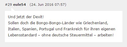 Und der #Brexit ist natürlich eine Gelegenheit für Rassismus. Zumindest für „eule54“.
