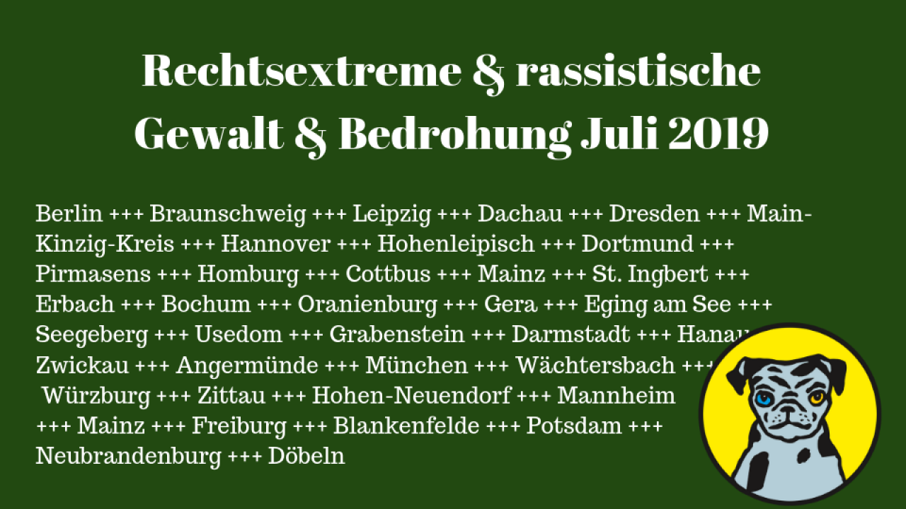 Diese Auflistung erhebt keinen Anspruch auf Vollständigkeit! Wenn Sie weitere Vorfälle kennen, senden Sie bitte eine Mail an belltowernews@amadeu-antonio-stiftung.de.