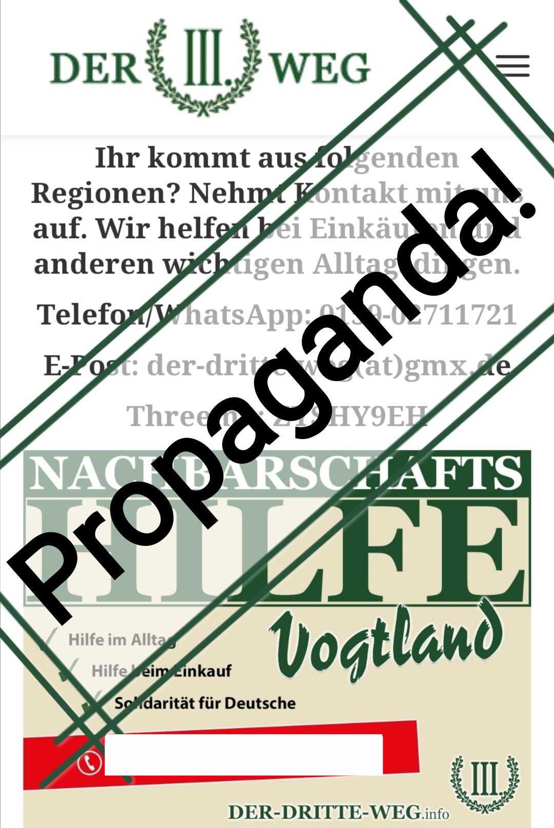 Auf der Website des „III. Wegs“ findet sich zu dieser Aktion übrigens nichts, wohl aber ein Artikel, der Corona zwar nicht als frei erfunden, aber doch als massive Hysterie beschreibt, die vor allem dem Ziel diene, „Oppositionelle zu kriminalisieren“.