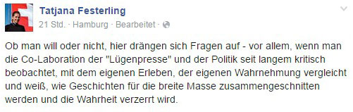 Wer diese These auch interessant, ist zum Beispiel Tatjana Festerling, Ex-AfD und aktuelles Pegida-Vereinsvorstandsmitglied: