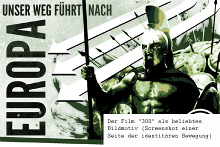 Wie bereits erwähnt, ist das Symbol der „Identitären Bewegung“ das griechische Lambda. Dieses zierte auch die Schilde spartanischer Soldaten und wurde im Zuge des Hype um den Film „300“ von Zack Snyder populär. Die Bezugsebene ist gerade in Zusammenhang mit dem Film klar: Da wehrt sich eine tapfere zahlenmäßig unterlegene Truppe gegen die anstürmenden fremden Horden – das Edle und Gute gegen das Fremde, Barbarische.