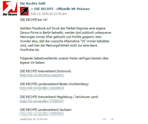 Screenshot: VK-Profil von „Die Rechte Suhl“