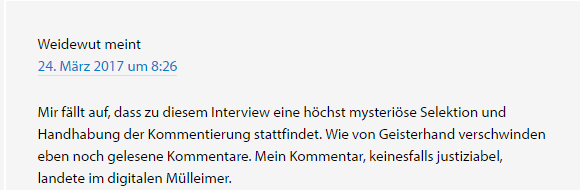 Andere Leser_innen sehen das Interview als Zeichen einer Zeitenwende. Der Wind habe sich scheinbar gedreht.