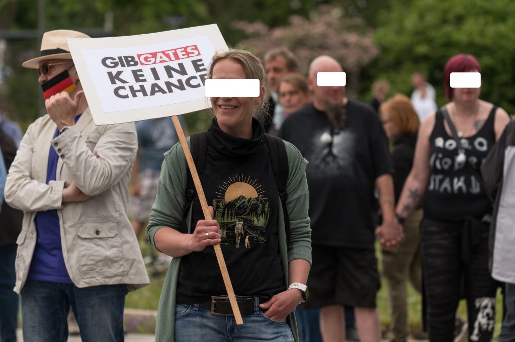 Unmittelbare Schuldzuweisungen an Minderheiten sind bei den Corona-Rebellen eher selten zu beobachten; im Gegenteil gibt man sich teilweise betont inklusiv und vielfältig. Ihre Schuldigen findet die Bewegung stattdessen weitgehend im Establishment: die Regierung, die Leitmedien, das RKI – und ganz besonders den US-Milliardär und Microsoft-Gründer Bill Gates (mitunter auch seine Ehefrau Melinda), der die angebliche Entwicklung des Virus in einem Labor finanziert haben soll. Über die Bill & Melinda Gates Foundation habe er die WHO, das in Deutschland für die Bekämpfung der Pandemie zuständige RKI, die „Mainstream-Medien“, ja eigentlich die ganze Welt unter seine Kontrolle gebracht. Nun wolle er die Pandemie zum Anlass nehmen, um den Bürgern bei vermeintlich bevorstehenden Zwangsimpfungen heimlich Mikrochips einzupflanzen und sie damit zu überwachen oder gar ihre Gedanken zu steuern. Teilweise steht auch Gates vermeintliches finanzielles Interesse an Zwangsimpfungen im Vordergrund. „Gib Gates keine Chance“ steht darum inzwischen auf Schildern und T-Shirts, die im Stile der „Gib Aids keine Chance“-Kampagne gehalten sind.