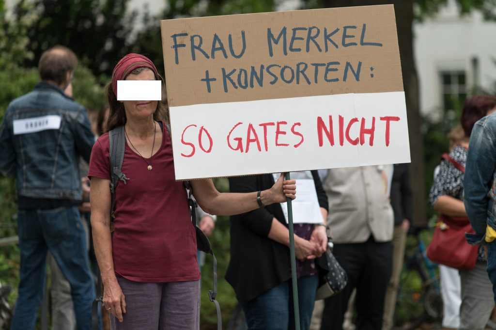 Indem die Corona-Rebellen Gates mit dem prominenten Slogan an die Stelle der Aids-Seuche setzen, entmenschlichen sie ihn und legen nahe, ihn vom Erdboden zu tilgen. In ihrem Weltbild spielt er die Rolle eines mächtigen und bösartigen Strippenziehers, der das „einfache Volk“ mit Impfstoffen vergiften will, um sich über von ihm kontrollierte Pharmakonzerne persönlich zu bereichern. Damit greifen sie eine ganze Reihe klassischer antisemitischer Vorstellungen auf und wenden sie gegen Gates: Die Juden hätten die Pestseuche verbreitet; sie wollten die Menschen vergiften; sie träfen im Hintergrund insgeheim die eigentlichen Entscheidungen; sie wollten nur Geld scheffeln. Verschwörungsmythen liefern keine plausiblen Erklärungen für komplexe Vorgänge, sondern präsentieren bloß Einzelpersonen, die als Sündenböcke fungieren. Auf diese Weise wird die Komplexität der Welt gedanklich auf ein bequem zu konsumierendes Minimum reduziert.