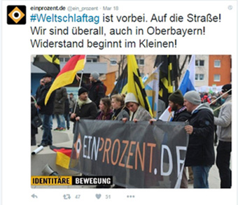 „Ein Prozent“ stellt den Versuch dar, unterschiedliche Akteure der Neuen Rechten zu vernetzen. Sie erfahren offen Unterstützung aus der AfD. Insgesamt hat die Kampagne ein sehr professionelles Auftreten. Es werden aufwendige Videos produziert und es gibt einen hohen Output an Artikeln und große Aktivität in den sozialen Netzwerken.