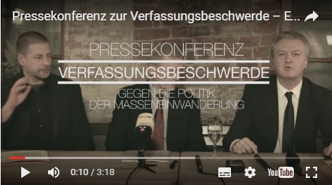 Februar 2016: Prof. Karl Albrecht Schachtschneider, Götz Kubitschek und Jürgen Elsässer reichen stellvertretend für „Ein Prozent“ Verfassungsbeschwerde gegen die Bundesregierung ein. Ziel: Die Bundesregierung soll die deutschen Grenzen schließen und so „gegen die illegale Einreise von Ausländern“ schützen. In Folge der angeblichen Missachtung dieser staatlichen Aufgabe fordert „Ein Prozent für Deutschland“ Bundeskanzlerin Angela Merkel und Vize-Kanzler Sigmar Gabriel abzusetzen (Deutschlandfunk/neues deutschland).