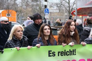 Leyla Bilge – die von den Rechtspopulisten allen Ernstes als „AfD-Kurdin“ bezeichnet wird – hatte bereits seit Wochen für ihren „Frauenmarsch“ am 17.02. in Berlin geworben. Vom Halleschen Tor in Kreuzberg sollte die Demonstration zum Kanzleramt laufen, um auf die angeblich verfehlte Asylpolitik aufmerksam zu machen. Bilge, selbst AfD-Mitglied, wiederholte die gleichen haltlosen Behauptungen, die von Seiten der Rechtspopulisten und Pegida schon seit langem aufgestellt werden. Liest man den Demoaufruf, gewinnt man den Eindruck, Deutschland sei ein Bürgerkriegsland, in dem überall nur noch vergewaltigt und gemordet wird. Auch die von der „Identitären Bewegung“ initiierte Kampagne #120db hatte zur Teilnahme aufgerufen.