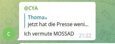 Noch deutlicher wird Mitdiskutant „CYA“: „Ich vermute MOSSAD.“