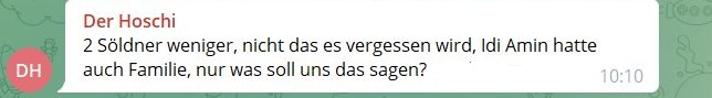 Und „der Hoschi“ ist völlig empathiefrei: „2 Söldner weniger, nicht das es vergessen wird.“