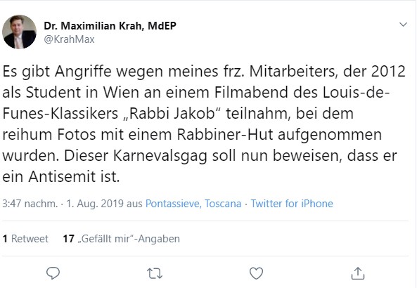 Wie ist dieser Kontakt entstanden? Warum stellt Krah einen Mitarbeiter ein, der selbst dem Rassemblement National zu antisemitisch erschien? Dies haben wir Maximilian Krah gefragt, bisher allerdings keine Antwort erhalten.