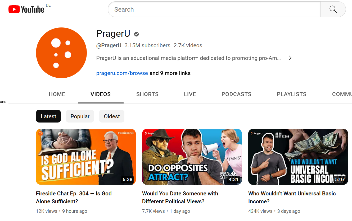 Die YouTube-Universität „Prager University“ („Prager U“) verspricht hingegen ihren Konsument*innen, sich mittels fünfminütiger Videos zu absoluten Expert*innen zu allen erdenklichen gesellschaftspolitischen Themen mausern zu können. Nur handelt es sich hierbei weniger um die Vermittlung eines Themas aus unterschiedlichen Perspektiven, um das Thema anschließend anhand eines wissenschaftlichen Rahmens einordnen zu können – sondern um rechtspopulistische Propaganda.