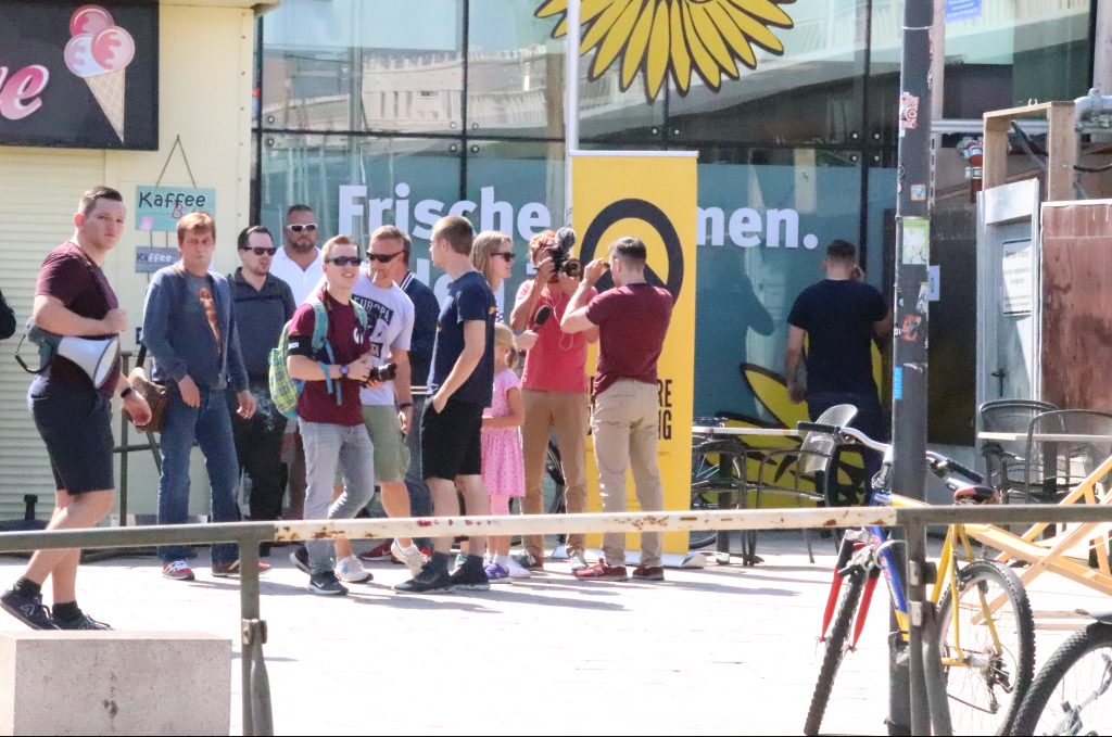 Am Vormittag, vor der eigentlich geplanten Demo, fuhr Martin Sellner, Kopf der deutschsprachigen IB, mit einer Handvoll Kameraden zum Bahnhof, um dort anreisende Gleichgesinnte in Empfang zu nehmen….