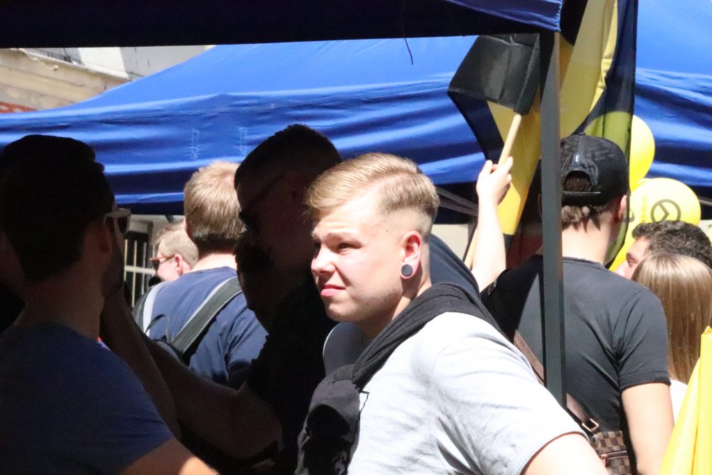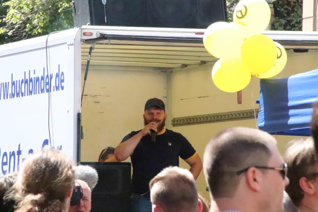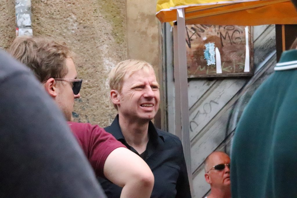 „Nur parlamentarischer Beobachter“ (Bild unten): Jan Wenzel Schmidt, AfD-Abgeordneter im Landtag von Sachsen-Anhalt, kam beim Sommerfest angeblich nur als Parlamentarischer-Beobachter vorbei. Schmidt ist Landesvorsitzender der AfD-Jugendorganisation Junge Alternative in Sachsen-Anhalt und wurde 2016 in den Landtag von Sachsen-Anhalt gewählt. Schmidt war im März 2016 „Redner und Ehrengast“ bei einer öffentlichen Versammlung der Identitären Bewegung in Wernigerode. Im April 2016 wurde bekannt, dass Schmidt in seinem Wahlkreisbüro mit Stefan Träger einen ehemaligen Bundestagskandidaten der NPD beschäftigt, so „Sachsen-Anhalt Rechtsaußen„.