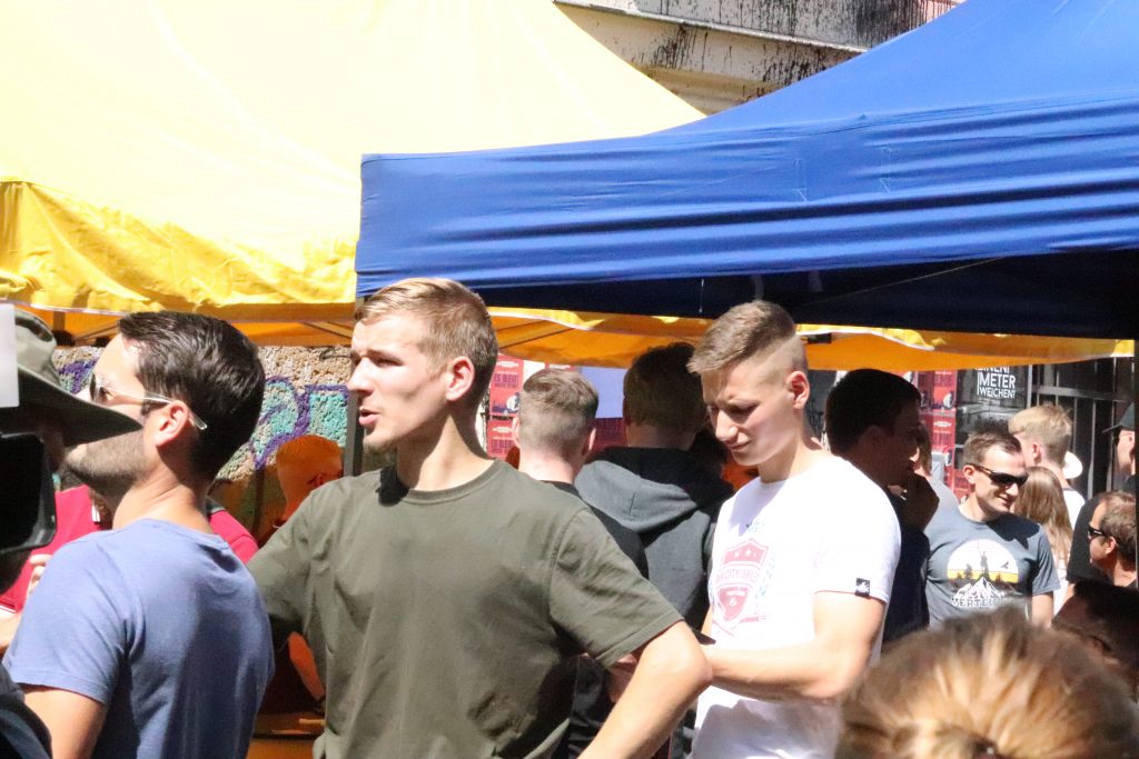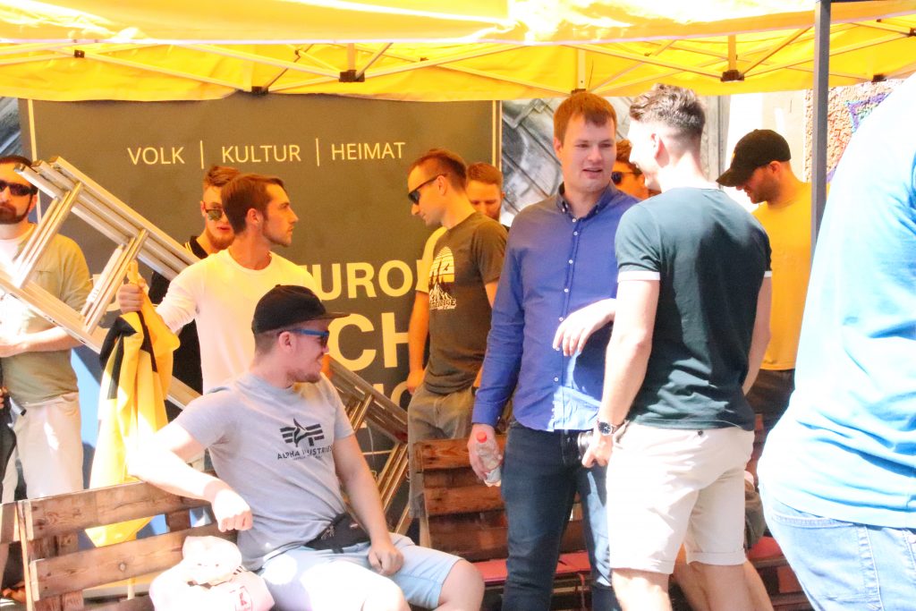Und natürlich wurde viel für die eigenen rechtsextreme Projekte geworben, wie hier für „AHA!“. Die „Alternative Help Association“ ist ein Projekt der „Identitären“ und unterstützt angeblich Geflüchtete in den Ländern um Syrien herum – damit diese nicht nach Europa kommen (vgl. BTN).