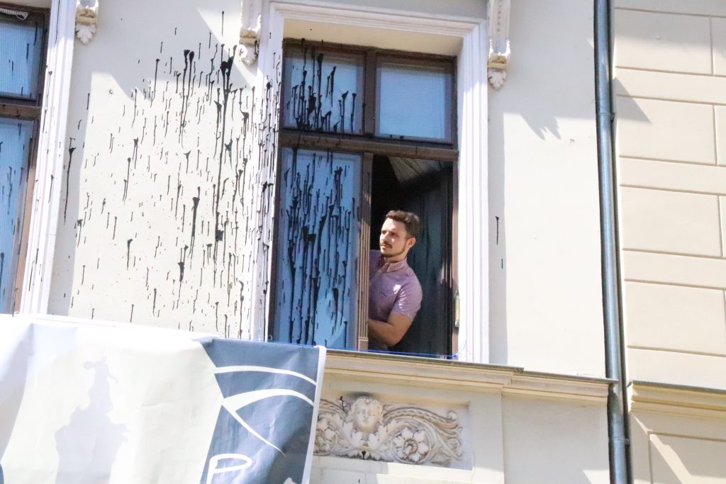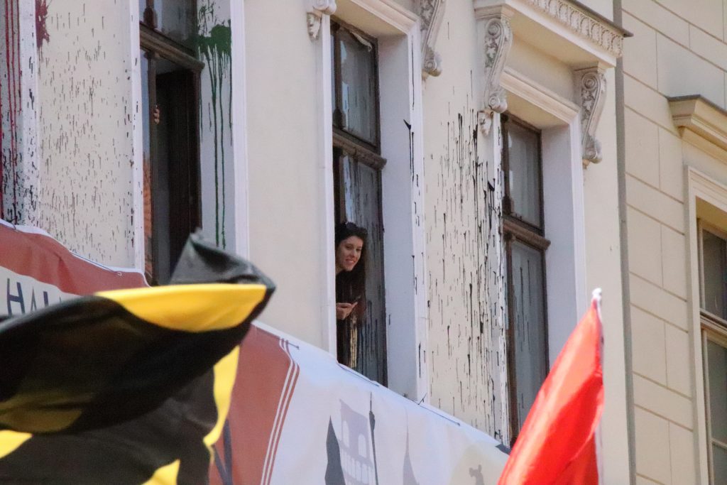 Die IB-Aktivistin Paula Winterfeld fotografiert aus dem Fenster:
