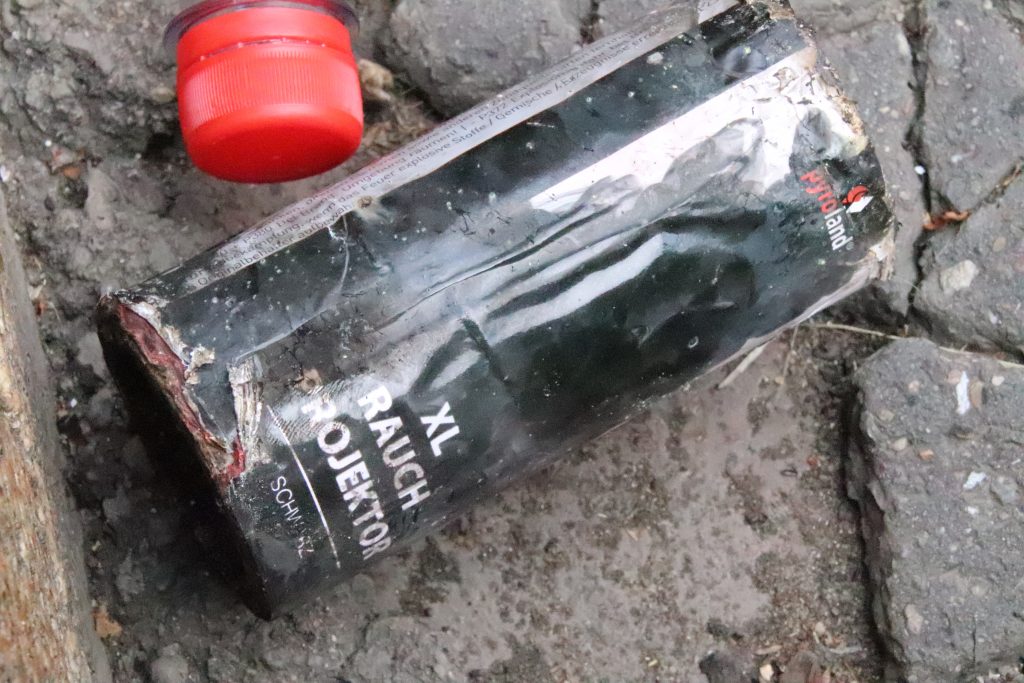 Gegendemonstrant*innen warfen einen Rauchtopf auf das Sommerfest der IB (Bild unten).