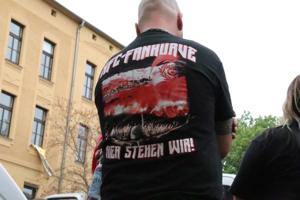 In den Reihen der IB gab der Leipziger Aktivist Alexander Kleine (Malenki) den Einheizer. Er skandierte martialische „Ahuu, Ahuu“-Rufen – an der schläfrigen Stimmung änderte das jedoch nichts: