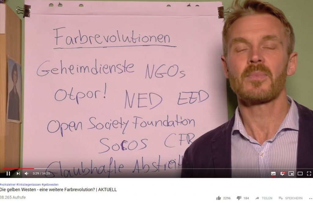 Wie üblich, ist sich die rechtsextreme Szene nicht ganz einig, wie sie zu den Gilets jaunes stehen soll. „Skeptisch“ ist zum Beispiel Nikolai Nerling, auch als „der Volkslehrer“ bekannt. In klassischer verschwörungstheoretischer Manier vermutet er, dass „böse Kräfte“ wie George Soros hinter der Bewegung stecken.