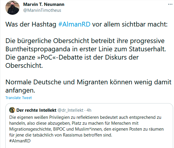 Unter #AlmanRD soll die „linke Doppelmoral” der vermeintlich antirassistischen Öffentlich-Rechtlichen aufgezeigt werden, deren Vorstände durchaus aus Weißen bestehen, obwohl Beiträge von Sendern oder YouTube-Formaten strukturellen Rassismus kritisieren.