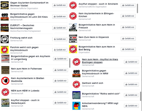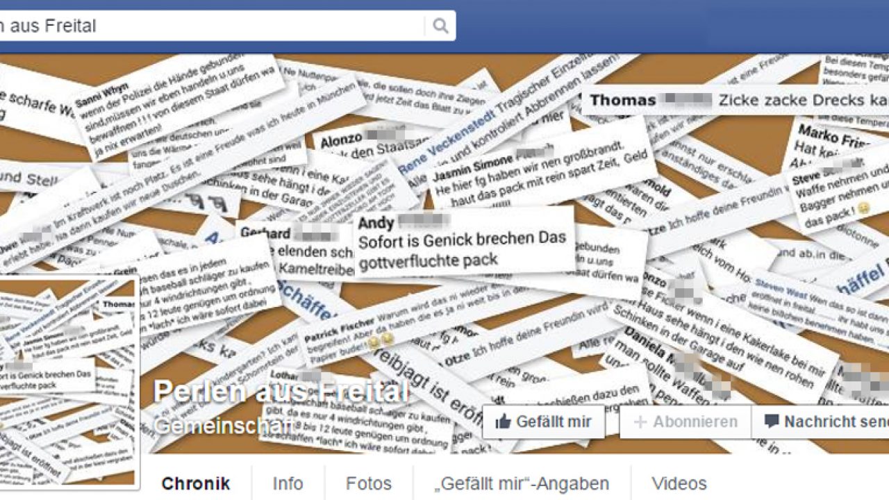 Offensichtlich: Der rassistische Hass, besonders gegen Flüchtlinge, ist aktuell besonders sichtbar. Es gibt zahlreichen feindliche „Bürgerinitiativen“ oder gar „Bürgerwehren“ etwa in Sozialen Netzwerken – in der Regel mit regionalem Schwerpunkt angelegt. Bei unserer letzten Zählung waren es mindestens 100 Gruppen allein auf Facebook. In den Medien war jüngst etwa das sächsische Freital, dass gleich drei solche lokalen Gruppen hat: „Freital wehrt sich – Nein zum Hotelheim“, „Frigida – unsere Stadt bleibt sauber“ und „Bürgerwehr FTL/360. Bestückt werden diese Hassgruppen nicht nur mit lokalen News, sondern auch mit hetzerischen Inhalten von bundesweiten Sammlungsseiten wie „Keine weiteren Asylantenheime in Deutschland“ (30.000 Fans), auch „Pegida“ spielt hier eine Rolle (weiterhin 156.000 Fans auf FB), ebenso die zahlreichen Rechtsaußen-Medien wie die „Junge Freiheit“, die „Kopp-Nachrichten“ oder „Politically Incorrect“. Das macht die Verbreitung von rassistischem Hass weniger aufwändig für den einzelnen, lokalen Admin.